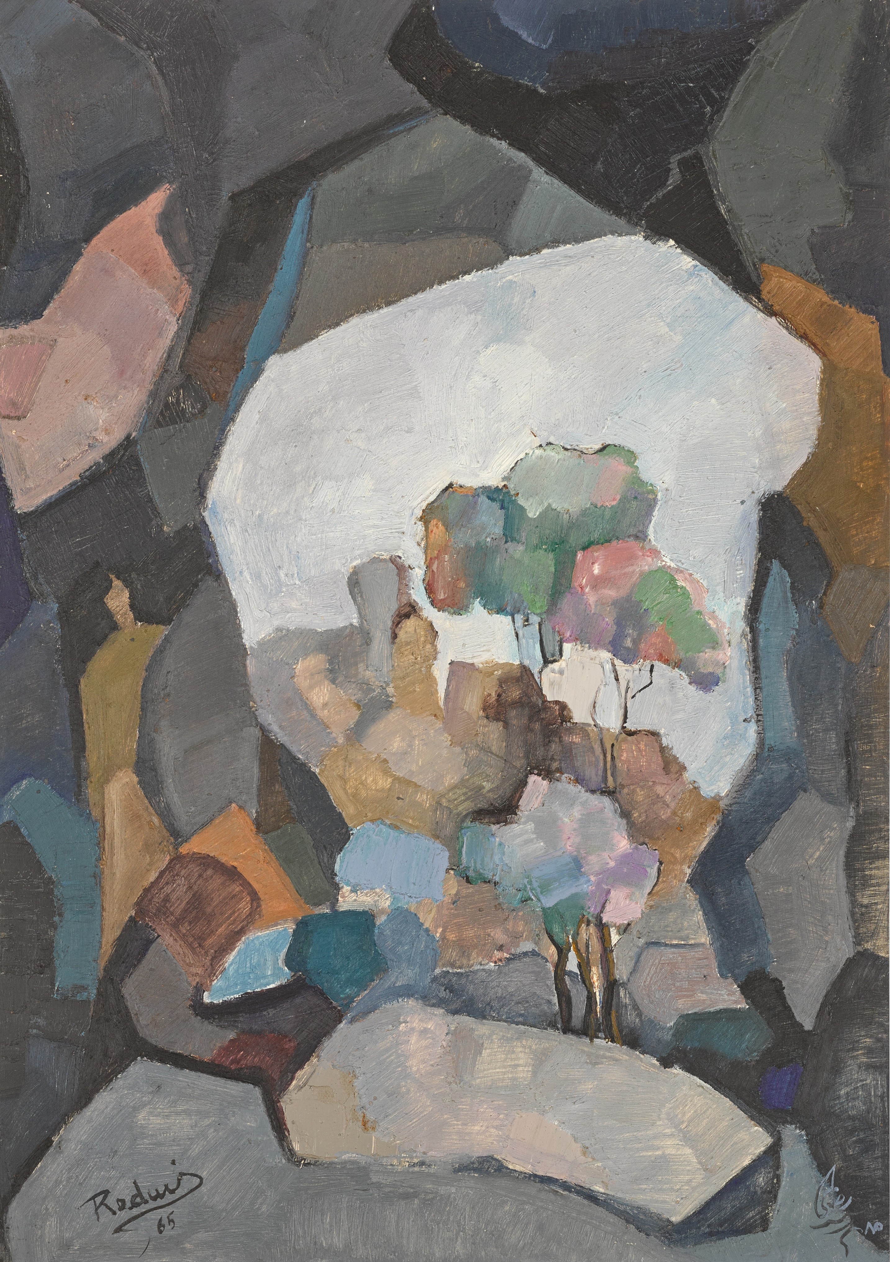 • امضاشده «Redwi» و تاریخ‌خورده «۶۵» (میلادی) به انگلیسی (پایین چپ)؛ امضاشده «Redwi» و تاریخ‌خورده «۸۵» (هجری قمری) به عربی (پایین راست)
